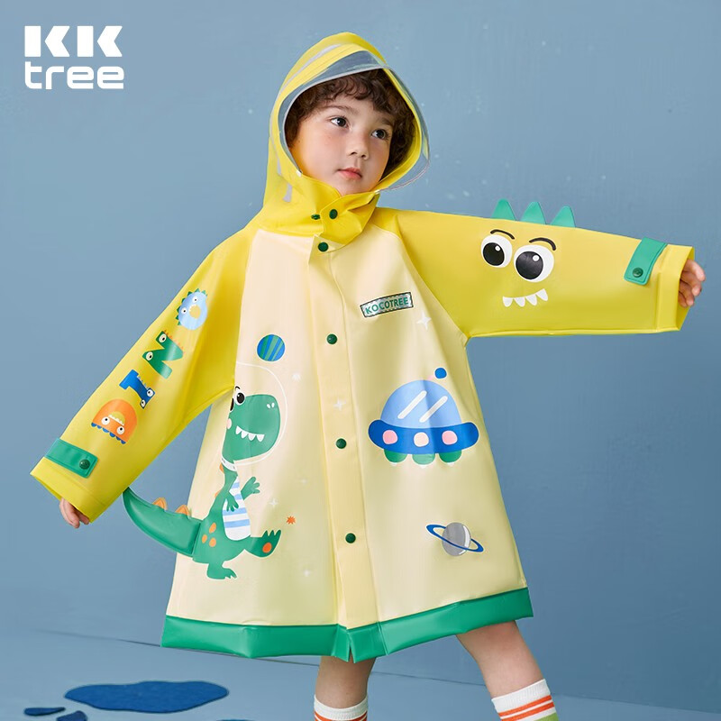 Kocotree儿童雨衣宝宝男童女小学生小童幼儿园雨披雨具分体斗篷式 绿野仙踪-恐龙【经典版】 XL 6-8岁 建议身高:125-140cm