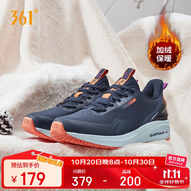 百亿补贴:雨屏|361°男鞋运动鞋2025秋冬新款薄绒跑步鞋防泼水休闲鞋跑鞋男