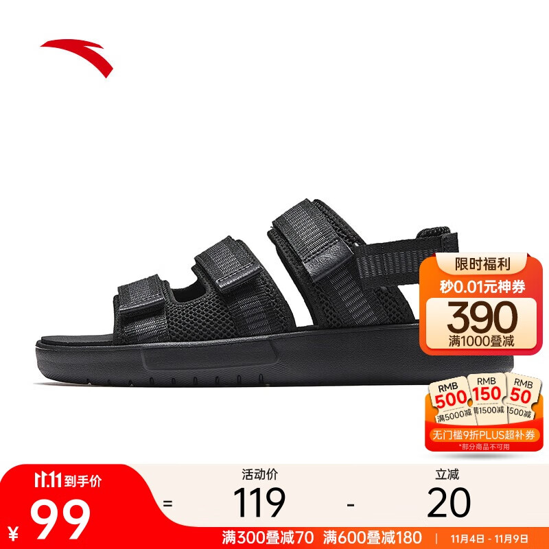 安踏凉鞋男款轻便透气运动鞋沙滩鞋防滑缓震轻便可外穿休闲鞋拖鞋