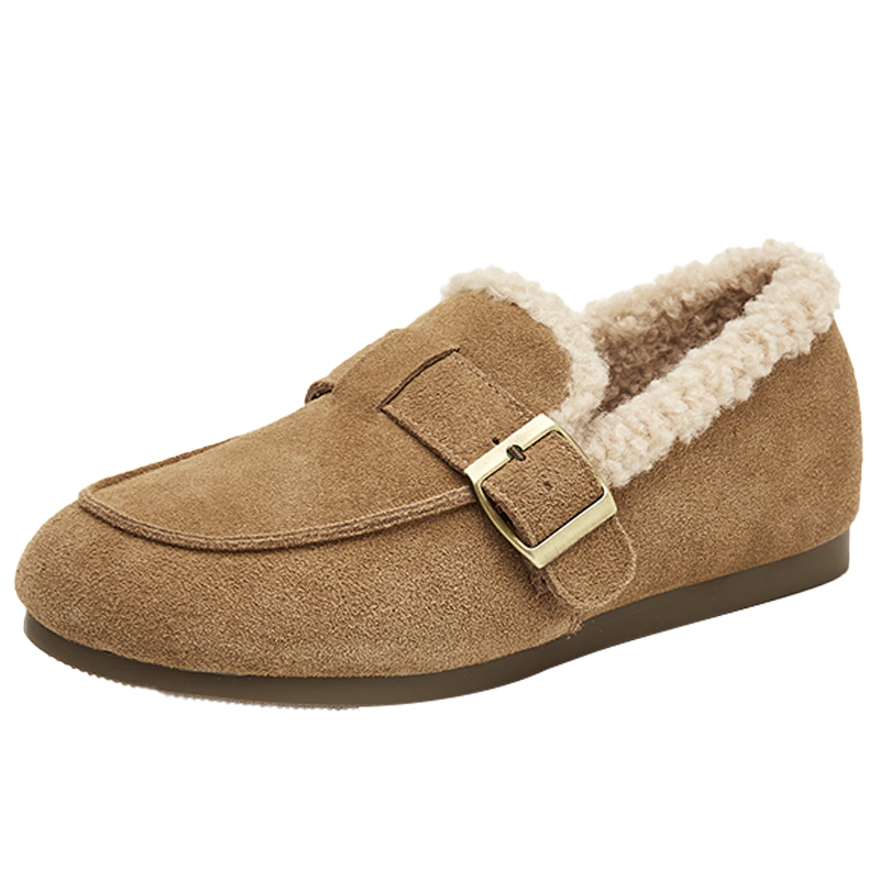 达芙妮平底毛毛鞋女软底单鞋加绒勃肯鞋舒适棉鞋女3122607008 卡其 38