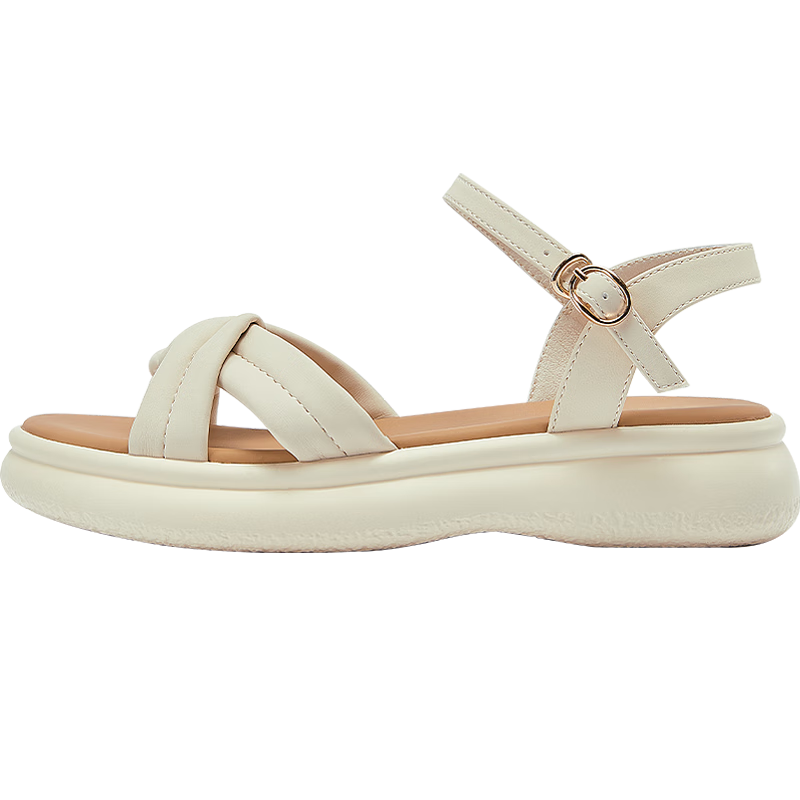 达芙妮七夕礼物凉鞋女夏季一字带沙滩凉鞋平底凉拖鞋女凉鞋 米白色 37