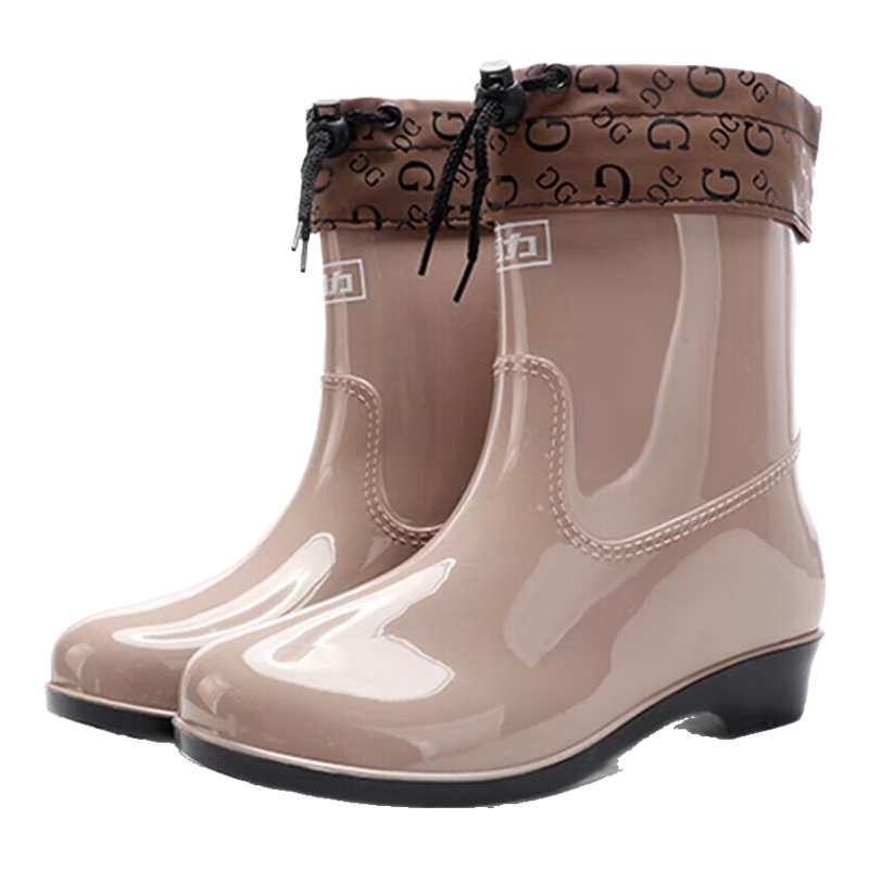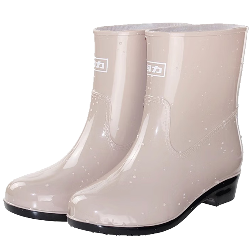 回力雨鞋女士中筒雨天防水不易滑胶鞋耐磨雨靴HXL23-S 卡其 37