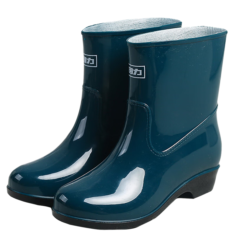 回力雨鞋女士时尚户外中筒防水雨靴水鞋胶鞋雨靴套鞋防滑胶鞋耐磨 墨绿色 39
