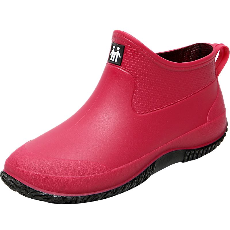 汐鲤雨鞋短筒雨鞋女夏季时尚雨靴加绒棉套保暖厨房户外工作防水胶鞋 红色 37
