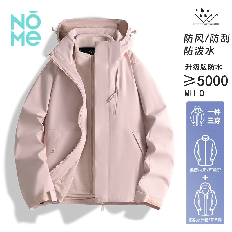 黑色 S NOME(服饰)情侣新款户外防风防水三合一可脱卸内胆石墨烯冲锋衣