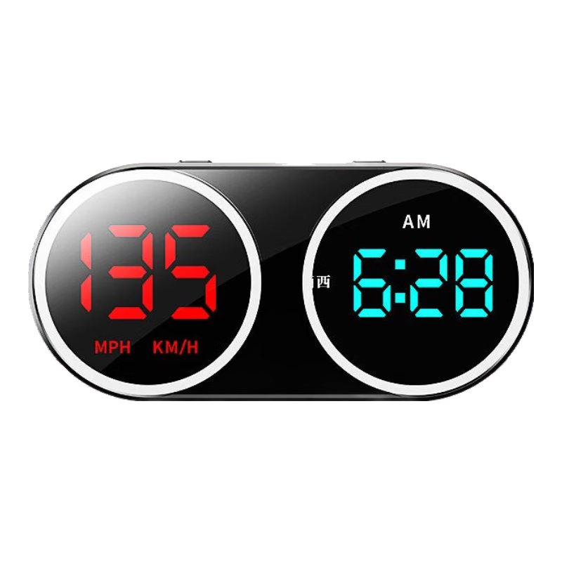 唯颖智能新款炫彩HUD汽车抬头显示安全预警仪语音播报超速报警指南针时钟 V12七彩光电子狗+数显双口车充