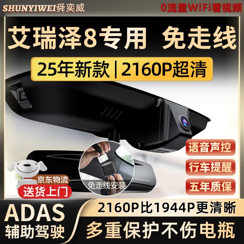舜奕威奇瑞22-25款艾瑞泽8专用行车记录仪免走线4K超清ADAS行车辅助预警 1440P双镜头+ADAS行车辅助+语音声控 128G专用卡