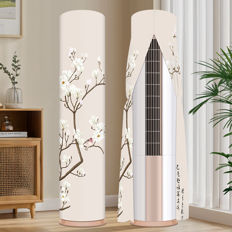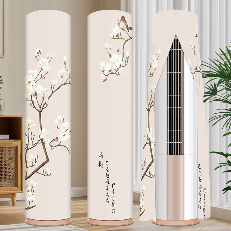百菲立式空调防尘罩圆柱形柜机适用于格力美的海尔奥克斯圆形罩套 暗香疏影【开机不取+双侧拉链】 圆柱高度180cm