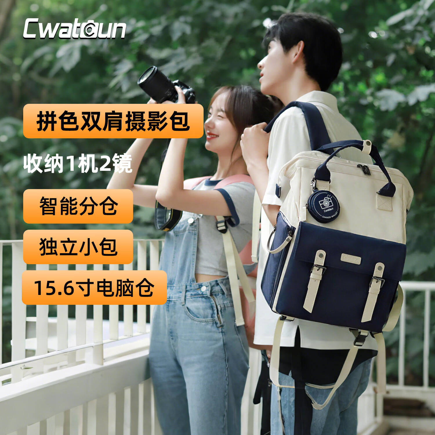 CWATCUN相机包双肩手提摄影包女士休闲背包男女单反相机背包适用于索尼尼康佳能