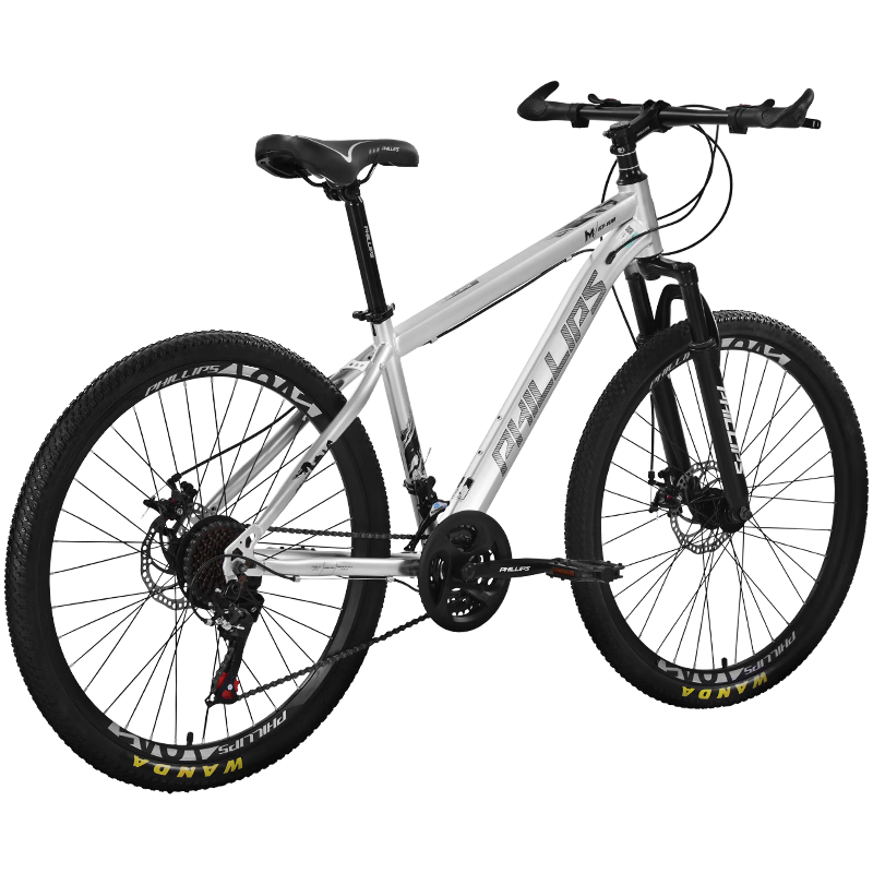 PHILLIPS菲利普自行车山地车越野减震骑行成人男女青少年学生变速城市单车 高碳钢-辐条轮-骑士灰 26英寸(适合155-180cm) 24速标准版