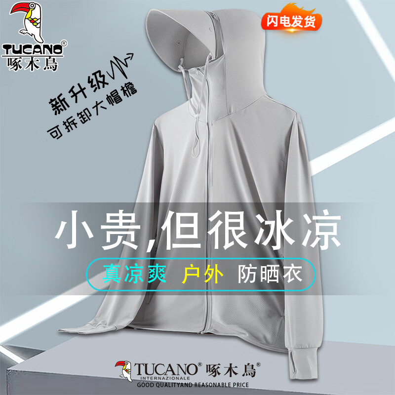 啄木鸟冰丝防晒衣男款夏季透气外套新薄款防紫外线户外钓鱼男女士防晒服 浅灰色男款 XL (建议125-145斤)