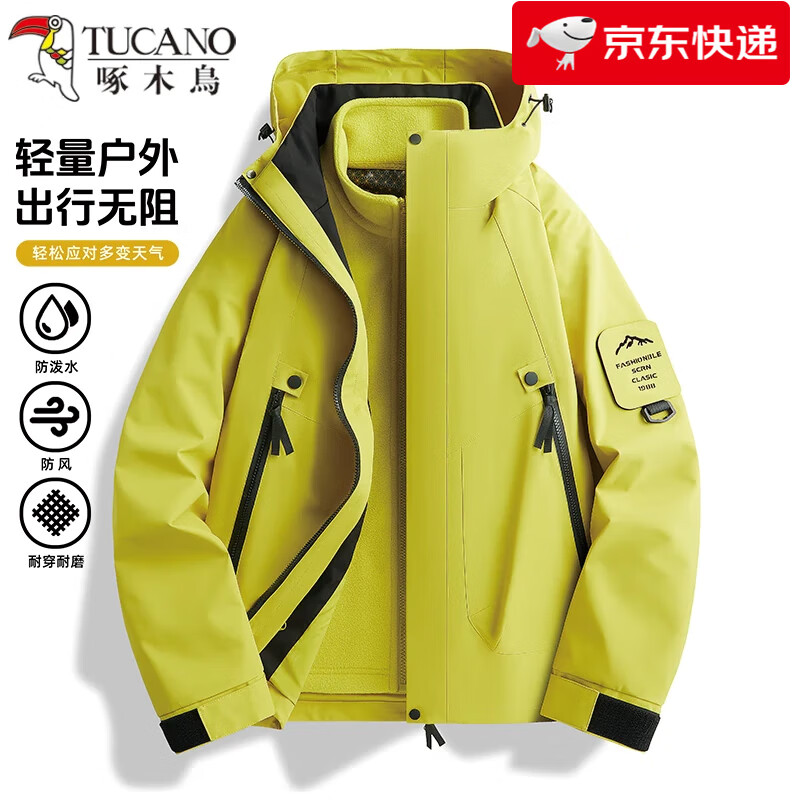 百亿补贴:啄木鸟(TUCANO)潮牌冲锋衣男女三合一外套秋冬加绒夹克滑雪登山服保暖户外两件套 DZ23658黑色-男 XS