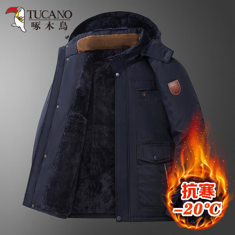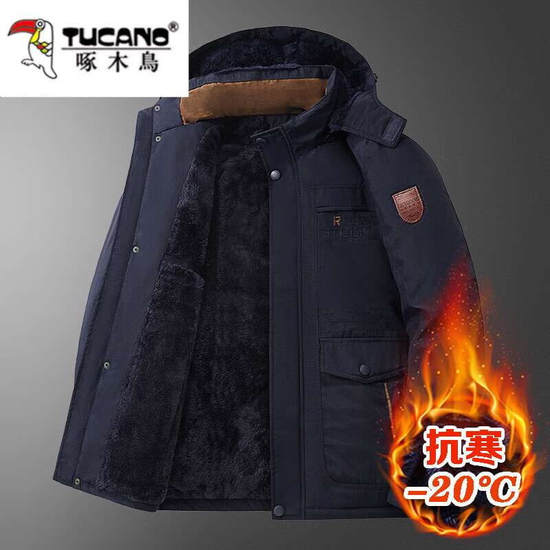 百亿补贴:啄木鸟东北特厚棉袄男防寒棉衣劳保棉服户外工作外套军大衣冬季加绒加厚 深蓝 2XL 建议体重130-145斤