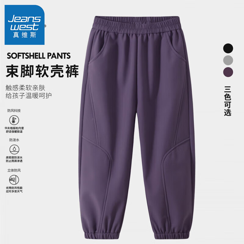 百亿补贴:真维斯(Jeanswest)儿童冲锋衣男女童软壳防水防风夹克男女孩三合一户外秋冬登山服 【三防保暖耐穿软壳裤】紫色 120 【推荐体重40-50斤】