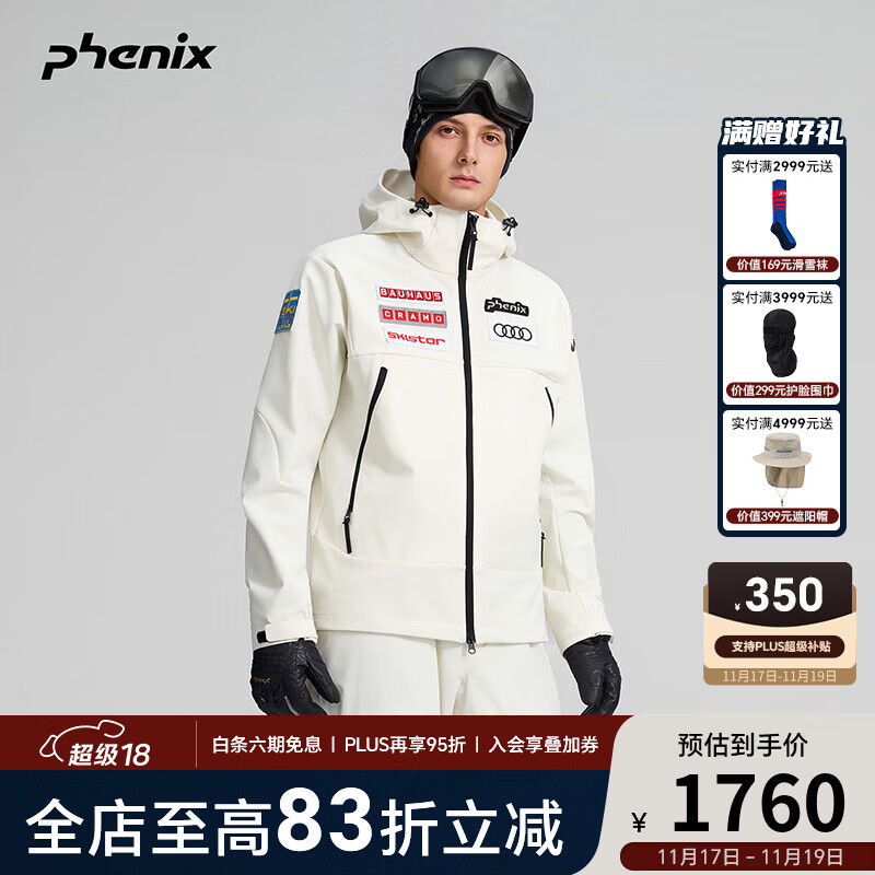 phenix菲尼克斯 国家队 25-26年新款连帽防风3L滑雪服中层运动户外卫衣 米白 S