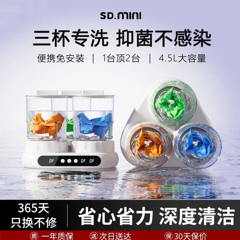 松电三杯免安装迷你内衣裤洗衣机洗袜子一体机小型便携式洗衣杯 双杯标准款【可脱水丨双杯独立清洗丨德国进口电机丨全身防水防喷淋丨360°仿生手洗】
