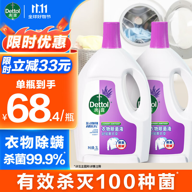滴露衣物消毒除菌液 高效杀菌除螨除味内衣裤清洁 搭配洗衣液消毒液用 【舒缓薰衣草】3L*2瓶