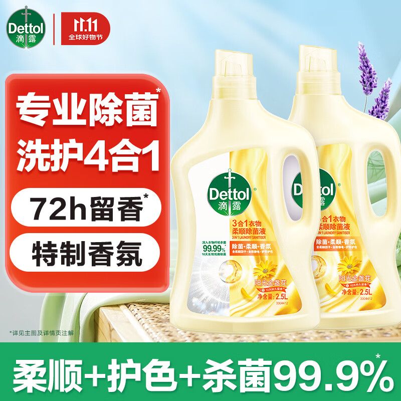 滴露衣物消毒除菌液 高效杀菌除螨除味内衣裤清洁 可配洗衣液消毒液用 【柔顺留香】金盏花2.5L*2大瓶