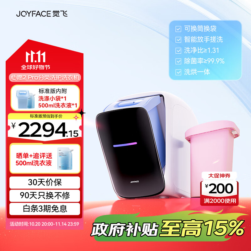 觉飞【新品首发】心愿2Pro迷你内衣裤洗衣机洗烘一体小型分类全自动家用清洗衣机 标准版