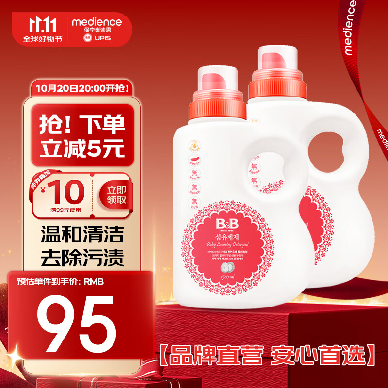 保宁(B&B)婴儿洗衣液宝宝儿童专用内衣裤洗衣液温和植萃桶装【两桶共6斤】