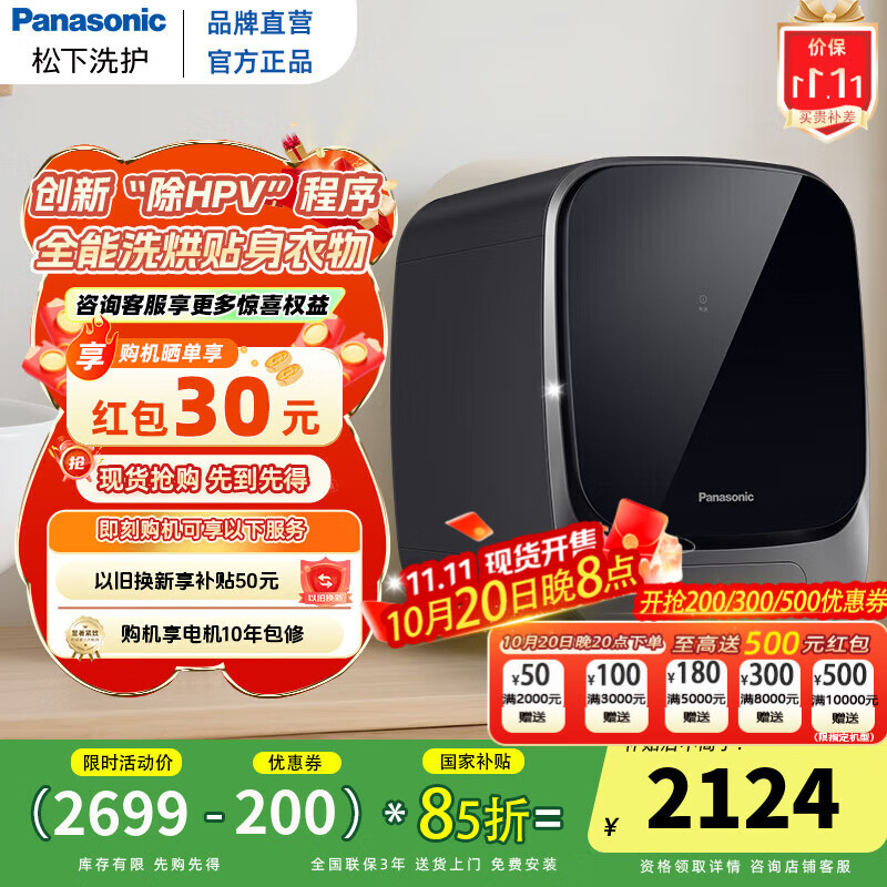 松下(Panasonic)【吴磊推荐】小欢洗MATE内衣裤洗衣机婴儿童迷你洗烘一体机内衣洗血渍洗95度高温煮洗DD直驱变频 逸心灰XQG10-AD15S