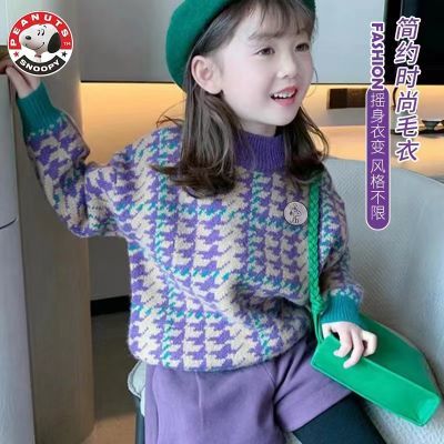 百亿补贴:史努比儿童毛衣秋冬新款千鸟格加绒半高领针织毛衣男女童套头上衣