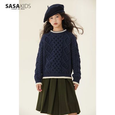 百亿补贴:【清仓断码特惠】膨体棉晴麻花棒针毛衣女儿童冬装学院风针织衫