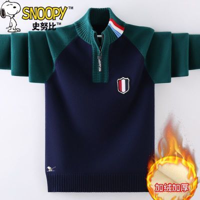 百亿补贴:史努比冬季新款男孩半高领半拉链针织衫毛衣中大童儿童针织衫上衣