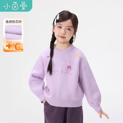 百亿补贴:小茵曼童装女童保暖毛衣彩色蝴蝶结25冬季儿童中大童圆领套头上衣