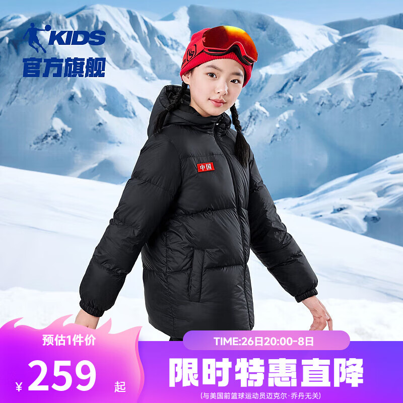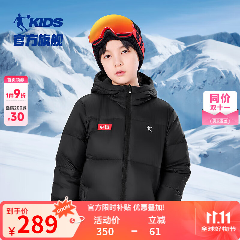 乔丹QIAODAN童装儿童羽绒服2024年冬季新款加厚中性大童棉服保暖外套 黑色 灰鸭绒 130 含绒量104.5±5g
