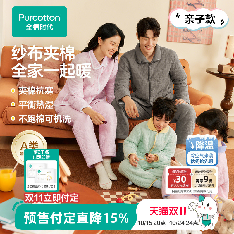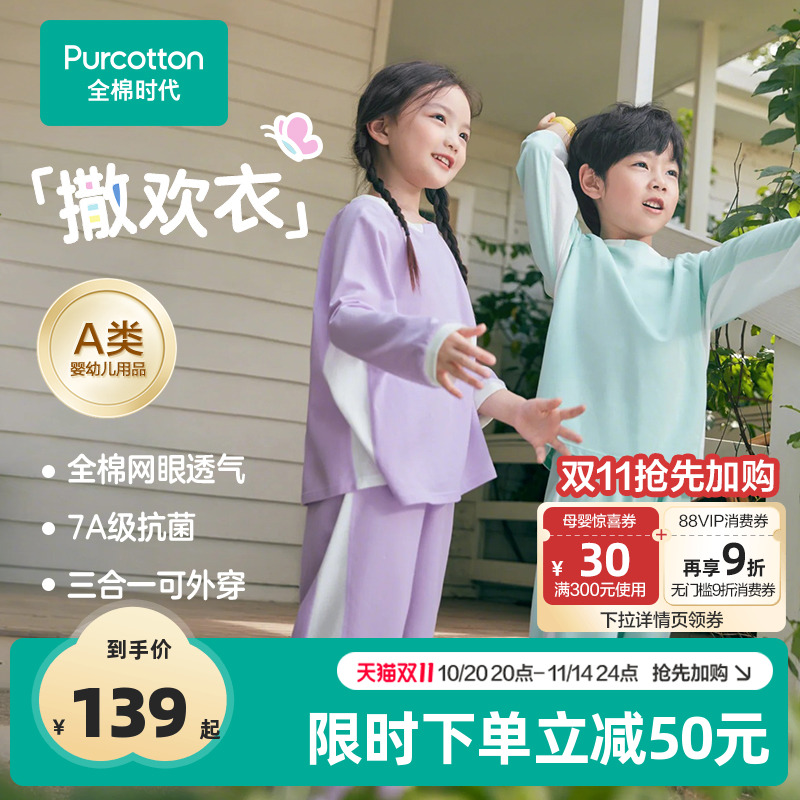 全棉时代儿童睡衣25年春新款抗菌透气家居服男童女孩运动纯棉衣服