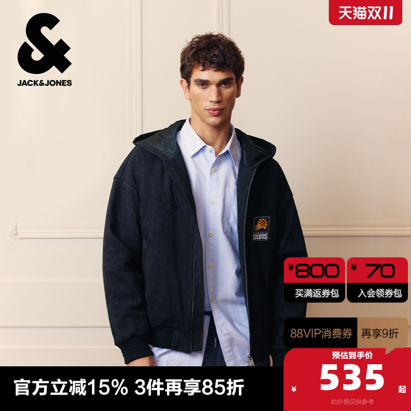 E38深海蓝 165/88A/XS 杰克琼斯奥特莱斯NBA联名男装棉服冬季新款贴布连帽宽松保暖外套