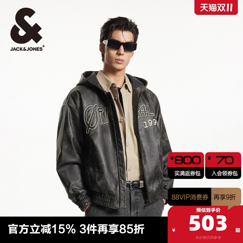 E13灰狼棕 165/88A/XS 杰克琼斯男装秋冬新款立体字母刺绣休闲宽松翻领工装棉衣棉服外套