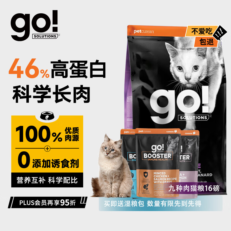 GO!SOLUTIONS原装进口九种肉成幼猫粮16磅,美毛发腮,高肉低敏低脂,护肠道 【爆款】九种肉16磅(至2025.12)