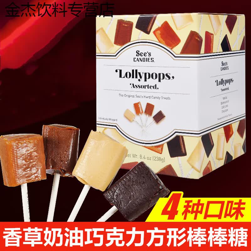 现货美国进口Sees candies喜诗时思棒棒糖无添加巧克力礼盒巴菲特 4支(每种口味各1支)