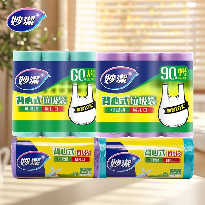 妙洁背心式垃圾袋厨房家用垃圾袋塑料袋易扎口大中号q