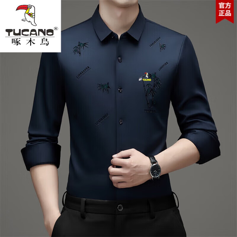 啄木鸟(TUCANO)长袖衬衫男秋冬季商务休闲双面绒防风保暖翻领上衣男装 9912 L