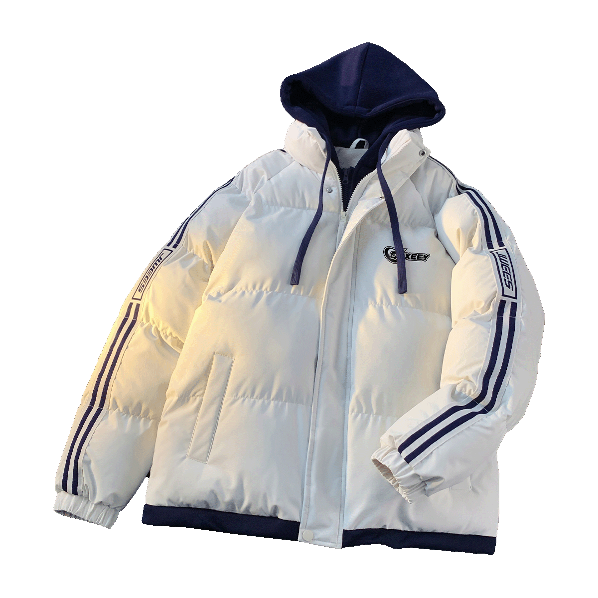 QNXEEY 【假两件加厚保暖】冬季女式棉衣撞色条纹锁温高级感连帽棉衣女