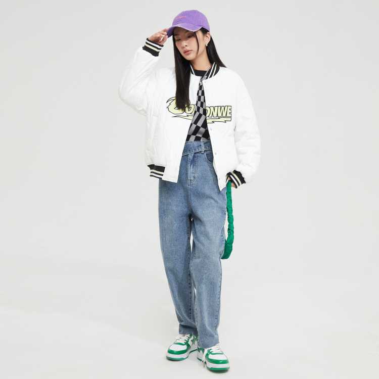 美特斯邦威 加厚棉服冬女棒球领贴布绣绗缝棉褛休闲舒适女式棉衣