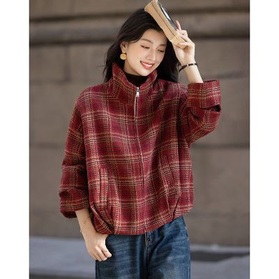 百亿补贴:德玛纳含蓬松绵羊毛冬复古风半开襟拉链翻领格纹落肩宽松女式棉衣