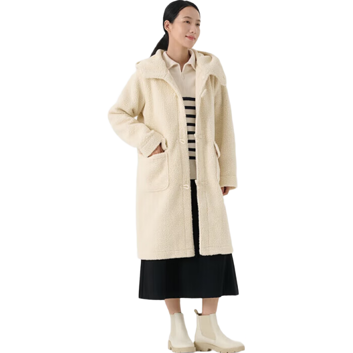 无印良品(MUJI)女式可水洗抓绒牛角扣大衣女款棉衣棉服冬装新品 象牙白色 M