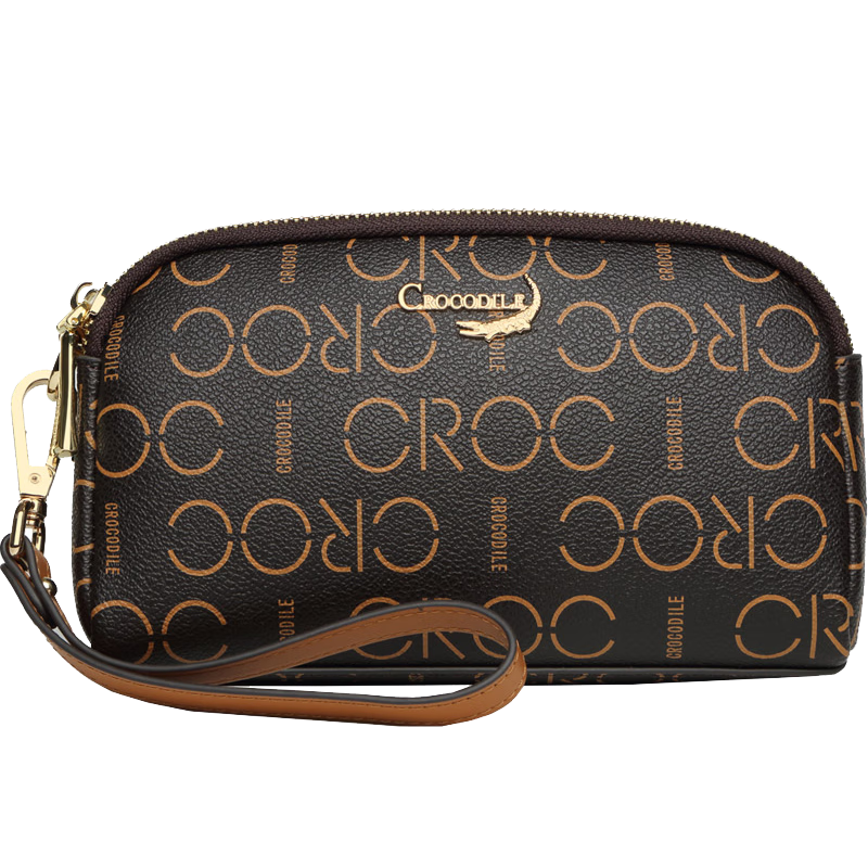鳄鱼恤双拉链手腕包经典老花休闲女士手包礼物送老婆V1686驼色