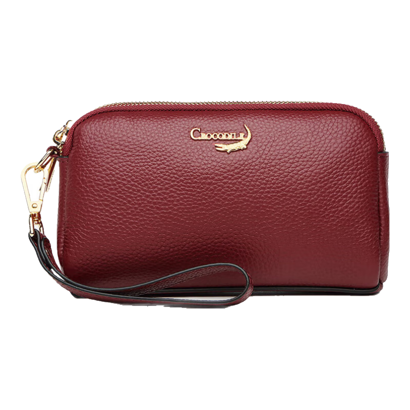 鳄鱼恤双拉链头层牛皮手腕包女士手拿包包简约长款钱包T2008酒红