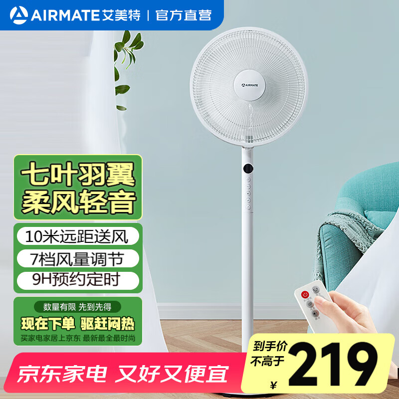 艾美特(AIRMATE)电风扇家用落地扇立式循环空轻音节能柔风电扇七叶遥控预约定时客厅卧室办公宿舍电扇风扇踏青放价 【7档轻音风+摆头90°+增高款】CS35-R18