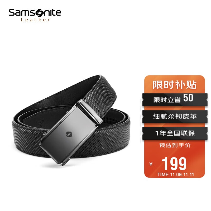 Samsonite新秀丽皮带男士新款自动扣腰带休闲商务牛皮裤腰带男NQ1