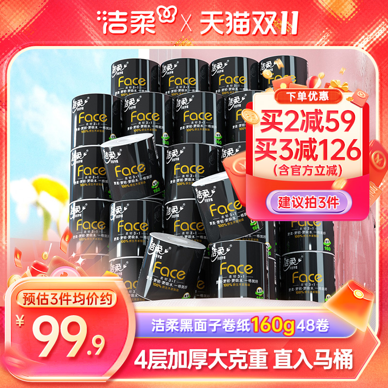 洁柔face卷纸160g大克重48卷卫生纸易冲散卷筒纸厕纸实惠装纸巾