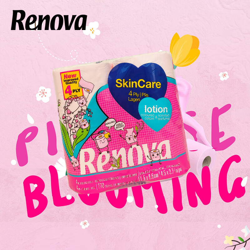 Renova粉色乳液卷纸有香卫生纸柔软舒适4卷装