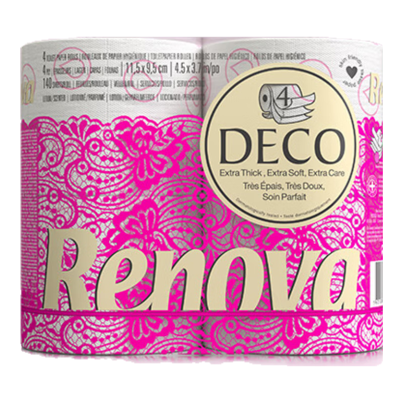 Renova欧洲进口印花香味卷纸4层加厚特柔卫生纸巾卷纸厕所手纸可冲马桶 4层 140节/卷*4卷