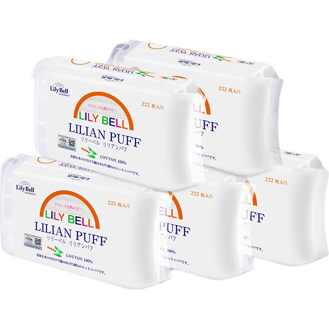 丽丽贝尔LilyBell全棉无纺布化妆棉省水不掉絮卸妆222枚*5包
