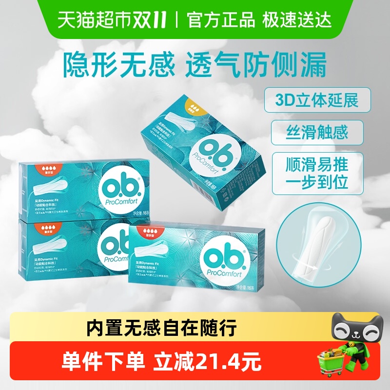 OB卫生棉条指入无感量多型1盒16支装京东自营内置德国进口隐形棉条